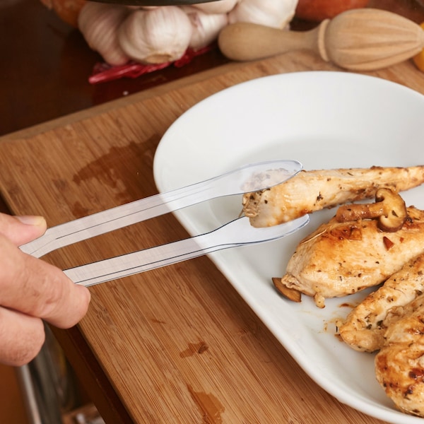 12" Clear Disposable Plastic Serving Tongs (48 Tongs), 48PK
