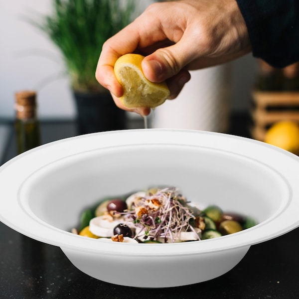 12 oz. White with Silver Edge Rim Plastic Soup Bowls (120 Bowls), 120PK