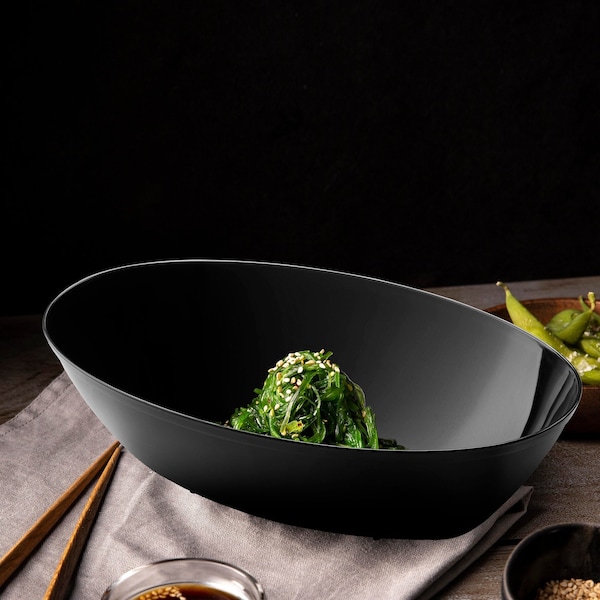2 qt. Black Oval Plastic Serving Bowls (24 Bowls), 24PK
