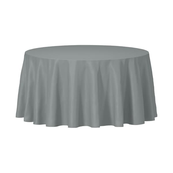 84 Silver Round Disposable Plastic Tablecloths 96 Tablecloths, 96PK