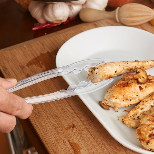 9" Clear Disposable Plastic Serving Tongs (48 Tongs), 48PK