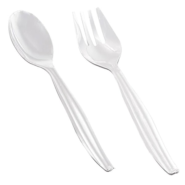 Clear Disposable Plastic Serving Flatware Set - Serving Spoons and Serving Forks (150 Pairs)