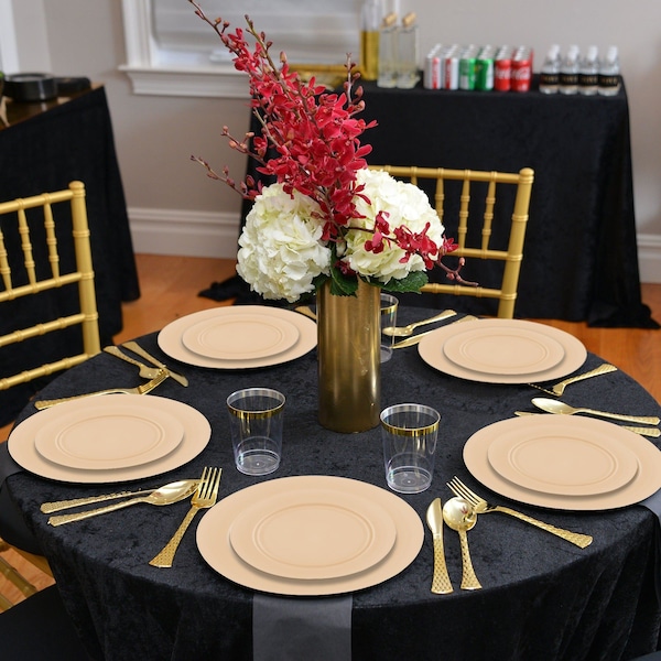 Matte Bright Yellow Round Plastic Dinnerware Value Set (120 Dinner Plates + 120 Salad Plates)