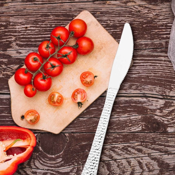 Shiny Metallic Silver Hammered Plastic Knives (1000 Knives), 1000PK