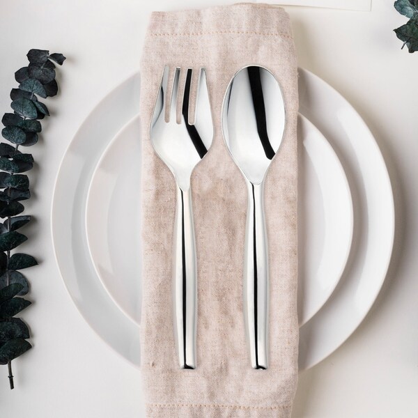 Silver Disposable Plastic Serving Flatware Set - Serving Spoons and Serving Forks (150 Pairs)