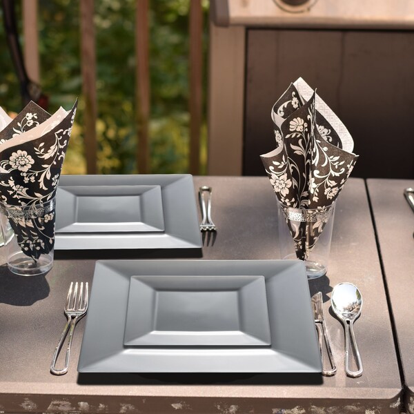Silver Square Plastic Plates Dinnerware Value Set (120 Dinner Plates + 120 Salad Plates)