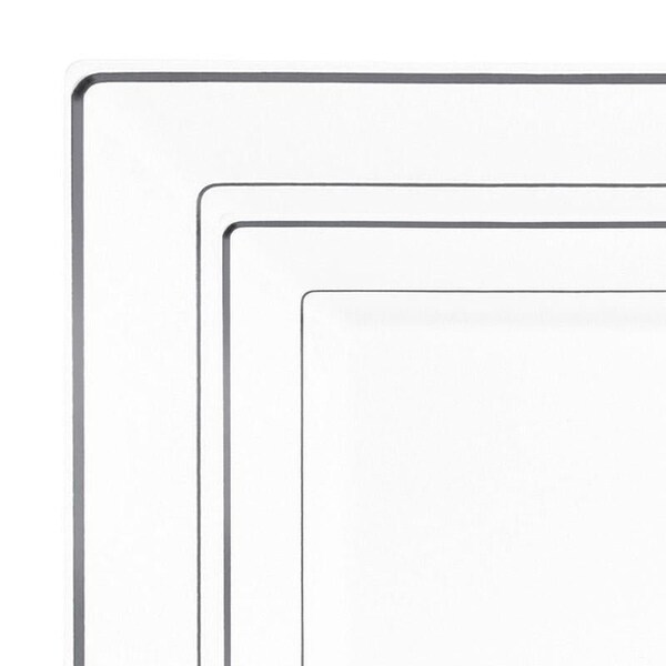 White with Silver Square Edge Rim Plastic Dinnerware Set (120 Dinner Plates + 120 Salad Plates)