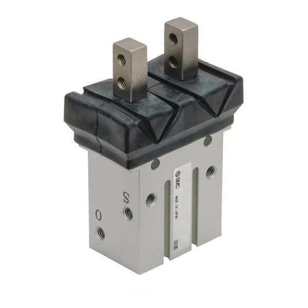 Parallel Gripper, Series MHZJ2, Open Width 20.9 mm, Stroke Length 6 mm, Maximum Operating Pressure 101.5 psi, Minimum Operating Pressure 14.5 psi, Overall Length 38 mm, Overall Width 67.3 mm, Overall Height 23.6 mm, Body Material Aluminum, Finger Material Stainless Steel, Includes Chloroprene Rubber Dust Cover, System of Measurement Metric