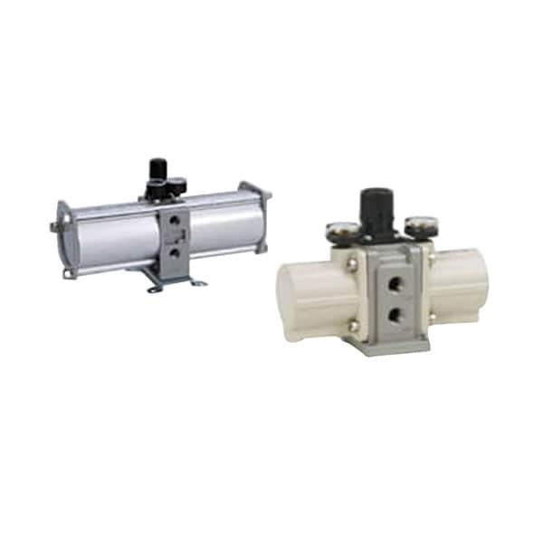 Booster Regulator; Standard; Body Size 1/4 in.; Handle-Operated Type; Pressure Increase Ratio Twice; Thread Type NPTF; Port Size 1/4 in.; Option Pressure Gauge 2 Pcs; Silencer; Semi-Standard Display Units For Product Nameplate and Pressure Gauge PSI