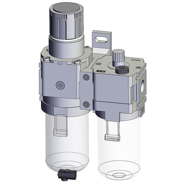 Filter, Regulator, Lubricator, Air Inlet Size 1/4 in, Air Inlet Type NPT, Maximum Operating Pressure 1 MPa, Filter Rating 5 micron, Filter Bowl Material Polycarbonate, Drain Type Manual, Overall Width 110.2 mm, Series AC-D, Air Flow Direction Left to Right, Air Outlet Size 1/4 in, Air Outlet Type NPT, Body Material Die-Cast Aluminum, Drain Included No, Filter Bowl Guard Included No, Filter Bowl Guard Material Not Applicable