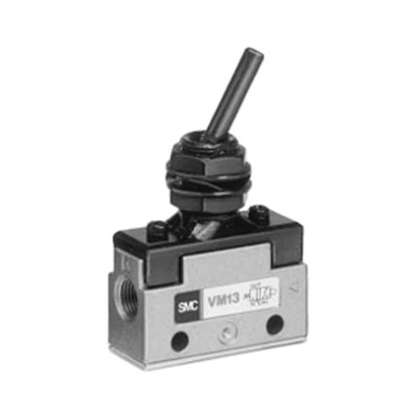 Mechanical Valve; 1/8 in. FNPT Port; 3 Port, 3 Way; 2 Position; Pneumatic; Toggle Lever, Detent Return; 145 PSI; 23 To 140 Deg F; Zinc