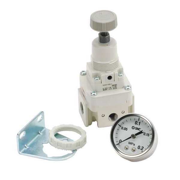 Precision Compressed Air Regulator, Air Inlet Size 1/4 in, Air Inlet Type Rc, Maximum Flow Rate 1,900 lpm, Maximum Operating Pressure 1 MPa, Maximum Operating Temperature 60 Degrees C, Pressure Gauge Included Yes, Adjustment Mechanism Knob, Series SMC, Adjustment Mechanism Material Aluminum, Air Flow Direction Left to Right, Air Inlet Gender Female, Air Outlet Gender Female, Air Outlet Size 1/4 in, Air Outlet Type Rc, Body Material Aluminum, For Fluid Type Compressed Air, For Substance Type Air