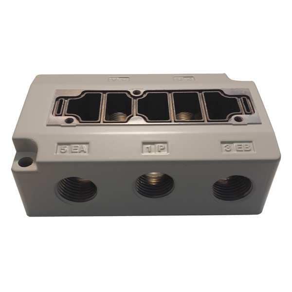 Subplate, For Use With SY9*40 Valves, Number of Valve Stations 1, Valve Port Size 1/2 in, Cv 2.5, Solenoid Valve Manifold, SY9000 Series, Length (In.) 3 in, Width (In.) 2 in, Height (In.) 1 in, Includes Not Applicable