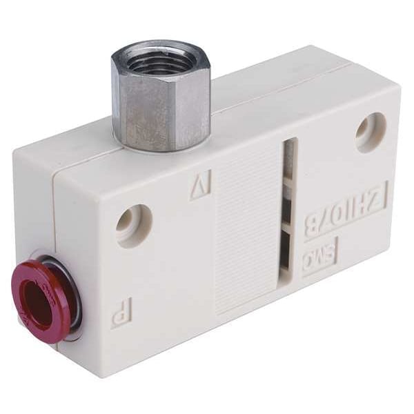 Item Vacuum Ejector, Includes Muffler, Maximum Flow Rate 34 lpm, Maximum Operating Temperature 60 Degrees C, Maximum Supply Pressure 87 psi, Overall Length 67 mm, Overall Width 19 mm, Pressure Port Size 1/4 in, Pressure Port Type Tube, Series ZH, Vacuum Port Size 1/8 in, Vacuum Port Type NPT, Vacuum Pressure @ 40 PSI -20 kPa, Vacuum Pressure @ 75 PSI -48 kPa, Weight 33 g