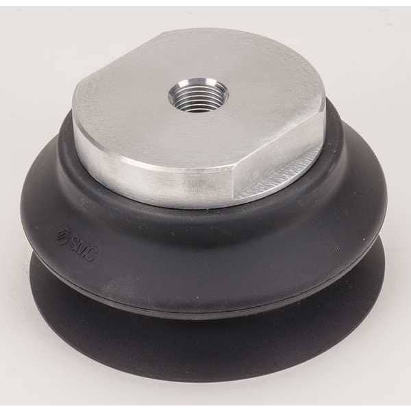 Item Vacuum Pad Assembly, Durometer 60A, Includes Adaptor, Pad, Maximum Operating Temperature 250 Degrees C, Minimum Operating Temperature 0 Degrees C, Pad Color Black with Green Mark, Pad Diameter 100 mm, Pad Height 60.5 mm, Pad Material Fluoro Rubber, Pad Type Bellows, Port Size M16x1.50
