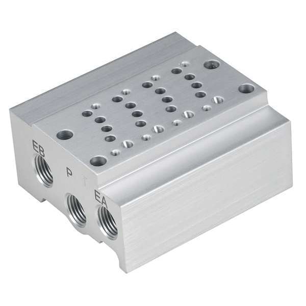 Bar Manifold, For Use With Mfr. No. SY3000 Series Base Mounted Valves, Number of Valve Stations 4, Valve Port Size M5 x 0.8, Cv 0.18, Solenoid Valve Manifold, SY3000 Series, Length (In.) 2 1/2 in, Width (In.) 2 1/4 in, Height (In.) 1 1/8 in, Includes Not Applicable