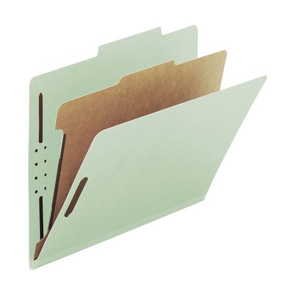 100% RECYCLED PRESSBOARD CLASSIFICATION FOLDERS, 1 DIVIDER, LEGAL SIZE, GRAY-GREEN, 10PK