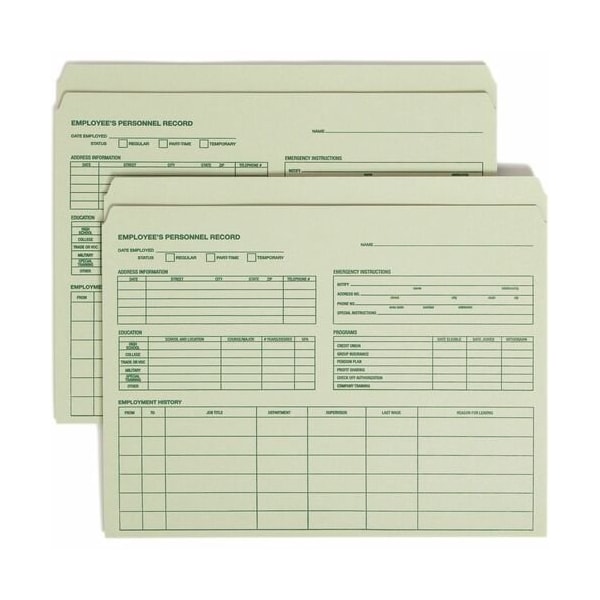 EMPLOYEE RECORD FILE FOLDER, 11-1/2X9-1/2, 20PK