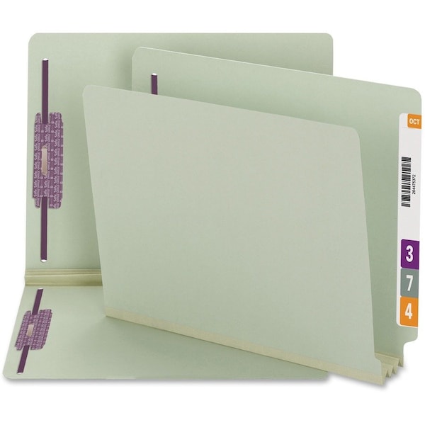 Use these heavy-duty pressboard folders for large, bulky files that get plenty of use. They are excellent for use as project files, real estate transaction files, loan files, legal files or anytime you need to keep large amounts of paperwork in sequential order for frequent reference. Durable, tear-resistant gusset expands to hold 3" of letter-size material. Straight-cut tab is 3/4" wide for easy filing and file retrieval. The two 2" prong, K-style fasteners are in positions No. 1 and 3 to keep each file organized. Other features include 25 point gray pressboard stock and top rounded corners in front and back. Folders are made with a high percentage of recycled material.