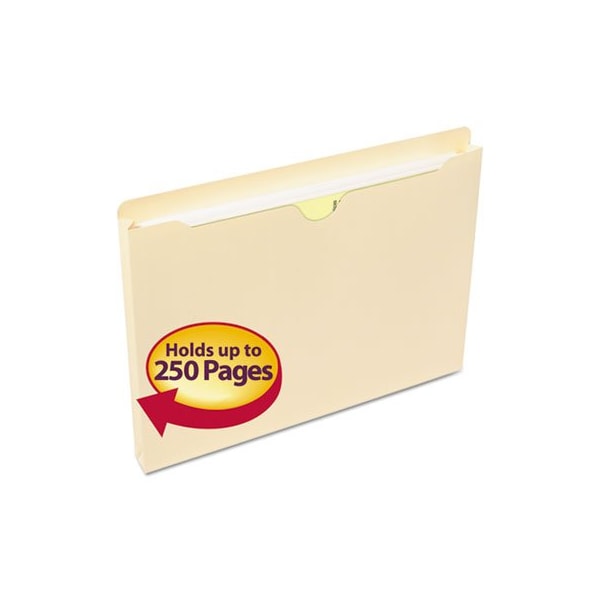 Full-height side gusset keeps materials from slipping out. Great for taking files out of the office. Select reinforced tabs for frequently used files. Features full height sides for document security and straight-cut tabs for easy labeling. These file jackets are great for taking documents out of the office for presentations, meetings or to work on at home. The straight-cut tab gives ample space to describe the contents and flexibility in labeling. For additional storage, apply one of our Self-Adhesive Poly Pockets 68185 to the outside, sold separately. Single-Ply Tabs. Number of Sections: 1; Tab Cut: Straight; Size: Letter; Punched/Unpunched: Unpunched.