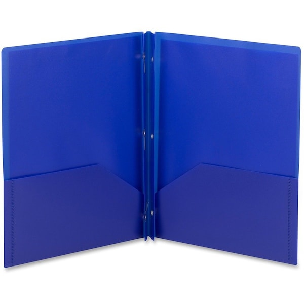 Durable, polypropylene, two-pocket folders are perfect for all types of presentations, proposals and projects. They allow easy storage and transport while keeping your letter-size documents organized and easily accessible. The large pocket holds up to 50 sheets each. Metal, tang-style fasteners hold up to 80 three-hole punched papers. Inside back pocket is die-cut to hold a business card. Durable poly material is tear-resistant, water-resistant and easy to clean.