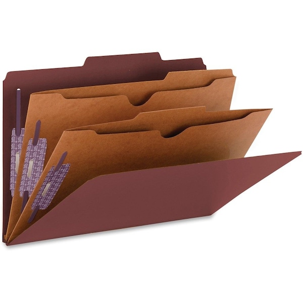 Heavy-duty classification folders feature pocket-style dividers and patent-pending, SafeShield Coated Fastener Technology to help prevent paper tears, finger cuts and excessive fastener crinkling. SafeShield adds protection for papers and fingers while also reducing fastener crinkling. Fasteners on front and back panels and dividers create separate filing surfaces within one folder. These two 2" coated fasteners on the panels are in positions 1 and 3. Legal-size folder also offers a 2" expansion and is made of sturdy, 25 point Pressboard stock. The two pocket-style dividers offer a 1" SafeShield-coated, twin-prong fastener and die-cut CD storage pocket on front. Each divider is made of 11 point stock. Tab on the folder is 2/5 cut. Tab on the dividers is 1/3 cut.