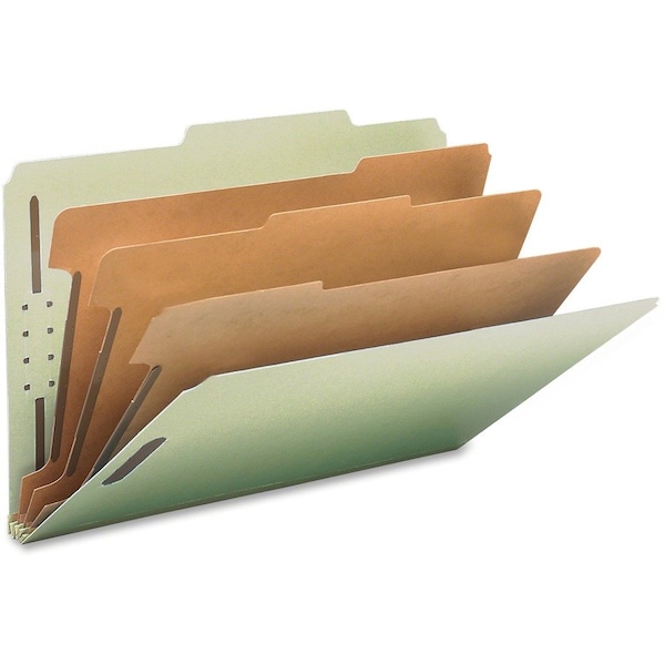 Made with a high recycled content, these heavy-duty classification files are ideal for the environmentally conscious office. Sturdy, heavyweight folders are made of 25 point pressboard for extra durability and make excellent project files. The three dividers feature fasteners to secure your important legal-size materials. Fasteners on front and back panels and dividers create up to eight separate filing surfaces, 2/5-cut tabs are in the right-of-center position. Each folder expands up to 3".