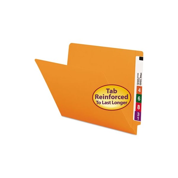 An industry standard choice for efficient shelf-filing, these folders feature reinforced, Shelf-Master double-thick tabs for added strength and superior durability. Vivid coloring allows you to code by subject, project or document types as well as for special patient needs or for certain insurance-policy differences. Alternatively, simply make use of the vivid colors to code large groups of folders for easy filing and retrieval. The folder's straight-cut tab design provides plenty of space for extensive labeling, and their end-tab format makes them ideal for incorporation into just about any pre-existing shelf-filing system. File Folder Size Type: Letter; File Folder Color: Orange; Color Family: Orange; File Folder Material: 11-pt Stock.