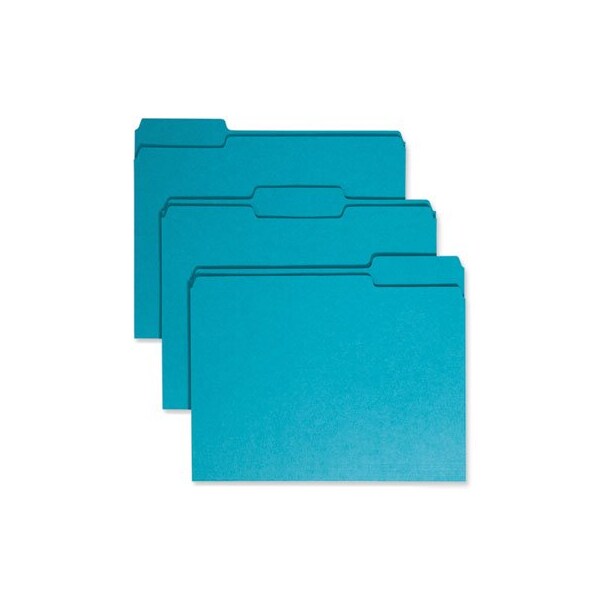 Speed filing and retrieval time by using color to categorize different types of folders. Single-ply is the economical choice for files that are seldom accessed. Speed filing and retrieval time with color. Economical choice for efficient filing. An office necessity. Made of 11 point stock featuring 1/3-cut tabs in assorted positions. Scored for 0.75in expansion. File Folder Size Type: Letter; File Folder Color: Teal; Color Family: Blue; File Folder Material: 11-pt Stock.