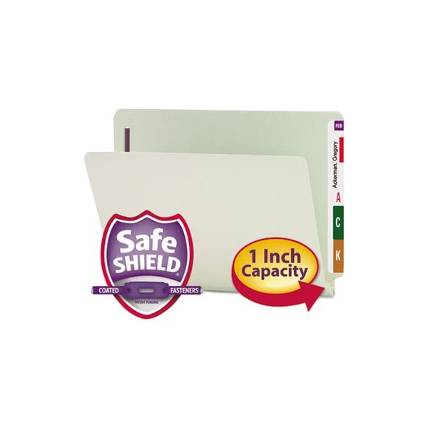Made for large, bulky files that get plenty of use. Excellent for project files, real estate transactions, loans, legal files, or anytime you need to keep large amounts of paperwork in sequential order for frequent reference. SafeSHIELD Coated fasteners add protection for papers and fingers while also reducing fastener crinkling. Made of 25 point pressboard stock. Two 2in prong SafeSHIELD coated B style fasteners in positions number 1 and number 3. Folder Size: Letter; Total Number of Dividers: 0; Total Number of Fasteners: 2; Max Folder Expansion: 1in.