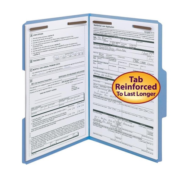 Used by attorneys, bankers or salespeople to keep meeting notes and written drafts, these durable top-tab folders with 2" prong, K-style fasteners speed filing and retrieval. Two fasteners per folder provide two separate filing surfaces. Keep meeting notes on one side and written drafts on the other. Legal-size folders feature 1/3-cut assorted tabs and are scored for 3/4" expansion. Reinforced tab is 1/2" high. Each folder is made from 11 point stock.
