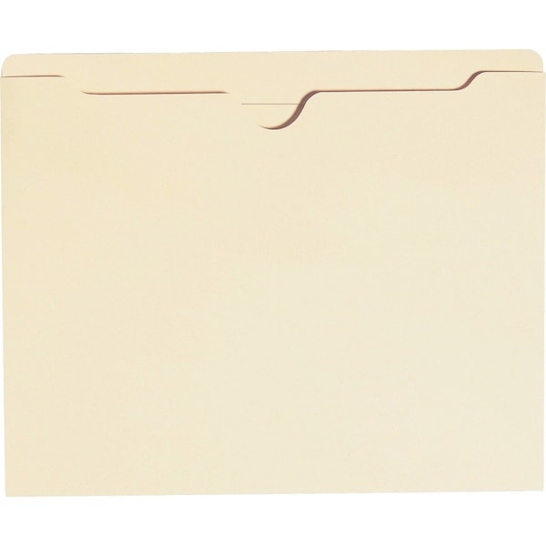 Manila file jackets have full-height gussets to keep materials from slipping out. The 1/2" high, two-ply reinforced, straight-cut tab with thumb-cut design allows easy access. Letter-size file jackets are scored 3/4" and made of 11 point stock.