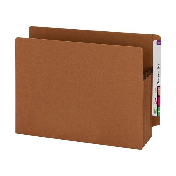 With a high percentage of recycled material, these end-tab file pockets are ideal for the environmentally friendly office. Roomy design is great for managing bulky records. Extra-wide, sturdy file pockets expand to hold a stack of files. Extra width accommodates standard, top-tab file folders. Rollover Tyvek reinforcement at the top of the gussets makes the sides virtually tearproof. Open top and 9'' high drop front provide easy access.