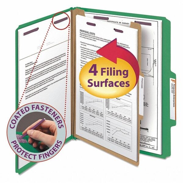 Pressboard Folder Top Tab, Green, PK10, Expanded Width: 2" (Discontinued)