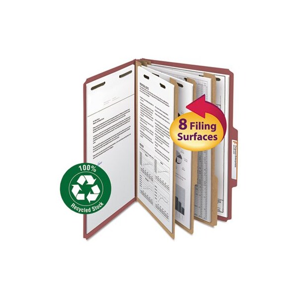 Smead, 100% RECYCLED PRESSBOARD CLASSIFICATION FOLDERS, 3 DIVIDERS, LEGAL SIZE, RED, 10PK