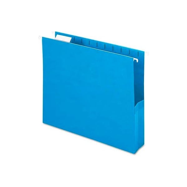 Smead 2" capacity closed side flexible hanging file pockets, letter, sky blue, 25/box expandable box-bottom hanging pockets feature half-high side gussets to hold large amounts of paperwork securely. Includes tabs and blank inserts. Hanging file folder type: box bottom with sides; size: letter; expansion: 2". this product arrives to most customers in 2-3 business days.