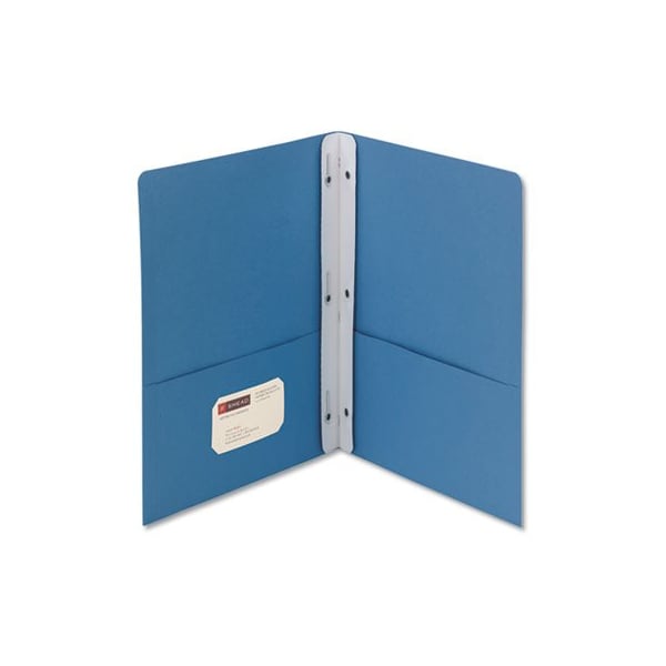 Large pockets safely hold documents for easy transport while keeping the material immediately accessible. Reinforced at the sides, closed at the center, and the left pocket holds a business card. Heavyweight textured stock makes a distinctive impression. White strip attached in the center fold has three fasteners to securely hold 3-hole punched documents. Safely holds up to 80 sheets of 3-hole punched papers. Large pockets hold up to 50 sheets each. Made of heavyweight stock for durability. Front Cover Colors: Blue; Color Family: Blue; Back Cover Colors: Blue; Sheet Size: 11 x 8.5.