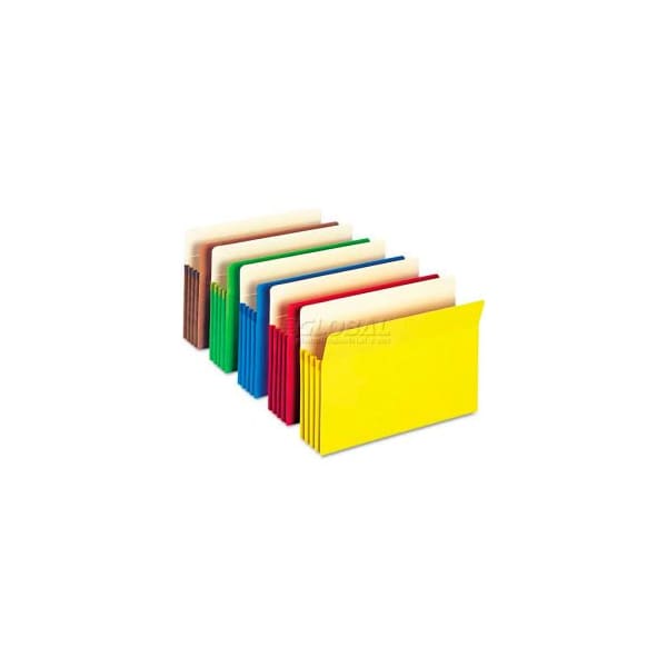 Smead 3 1/2" accordion expansion colored file pocket, straight tab, ltr, asst, 5/pack bright colored file pockets help color code projects. Tyvek rollover reinforcement ensures durability. Manila interior makes for easy labeling. Fold down front for easy access to contents. Bottom and sides fully enclosed for extra security. Expandable file folder type: top tab pocket; size: letter; width: 11 3/4". larger quantity quotes available. Please call 1-888-978-7759. this product arrives to most customers in 2-3 business days.
