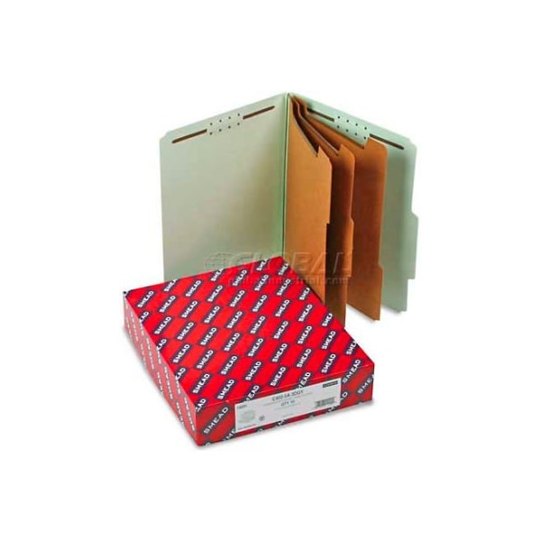Smead 3" expansion classification folders, letter, eight-section, gray-green, 10/box the ultimate classification folder when safety and security are most important. Safeshield bonded fasteners add protection for papers and fingers, while also reducing fastener crinkling. Made of pressboard for extra durability. Classification folder type: top tab; size: letter; number of sections: 8; cover material(s): 25 pt. Pressboard. this product arrives to most customers in 2-3 business days.