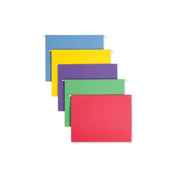 Color Hanging Folders keep your papers neatly upright in desk drawers and file cabinets. Combine them with colored interior folders to set up a color-coded system to help prevent misfiling and help make future file-referencing easier. Larger, repositionable, 1/3-cut clear poly tabs allow you to write larger or simply write more, so you can quickly find the file you're looking for, while allowing you to position each tab in any one of the three positions, on either the folder's front or back panel. Coated rod tips ensure that the folders slide easily within file-drawer racks and frames. Replaceable white-paper tab inserts allow you to repurpose each hanging folder to meet your current needs. Folder Size Type: Letter; Folder Color: Assorted; Color Family: Multicolor; Folder Color Assortment: Blue; Green; Purple; Red; Yellow.
