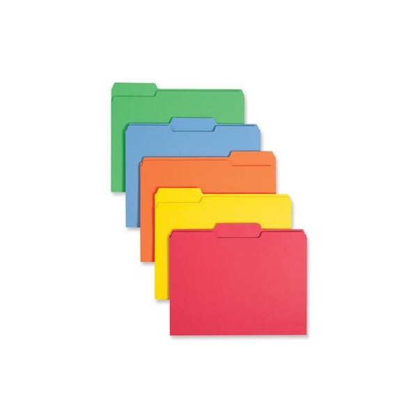 Speed filing and retrieval time by using color to categorize different types of folders. Single-ply is the economical choice for files that are seldom accessed. Speed filing and retrieval time with color. Economical choice for efficient filing. An office necessity. Made of 11 point stock featuring 1/3-cut tabs in assorted positions. Scored for 0.75in expansion. File Folder Size Type: Letter; File Folder Color: Assorted; Color Family: Multicolor; File Folder Color Assortment: Blue; Green; Orange; Red; Yellow.