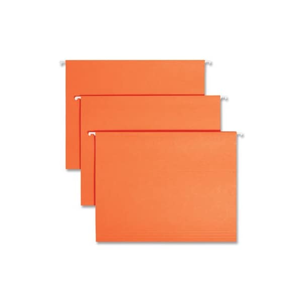 Choose from an assortment of bright colors to code different types of files and complement your office decor. Use with colored interior folders to prevent misfiling. Keep your papers neatly upright in desk drawers and file cabinets. Each hanging folder features a 1/5-cut repositionable poly tab and coated rod tips that slide easily in file drawers for hassle-free organizing and access to documents. The clear poly tabs have replaceable white tab inserts and can be positioned in several locations on the front or back panel so you can create a customized filing system. Folder Size Type: Letter; Folder Color: Orange; Color Family: Orange; Folder Material: 11-pt Stock.