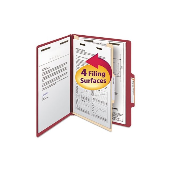 Smead, COLORED TOP TAB CLASSIFICATION FOLDERS, 1 DIVIDER, LETTER SIZE, RED, 10PK