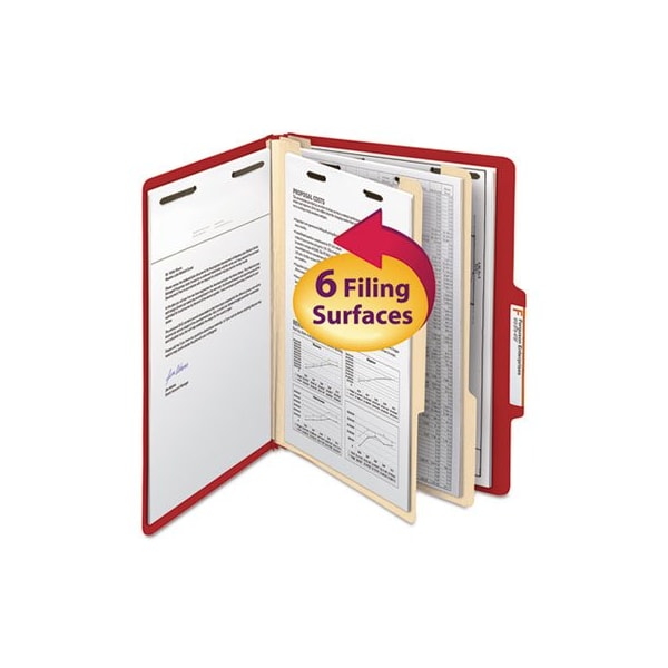 Smead, COLORED TOP TAB CLASSIFICATION FOLDERS, 2 DIVIDERS, LETTER SIZE, RED, 10PK