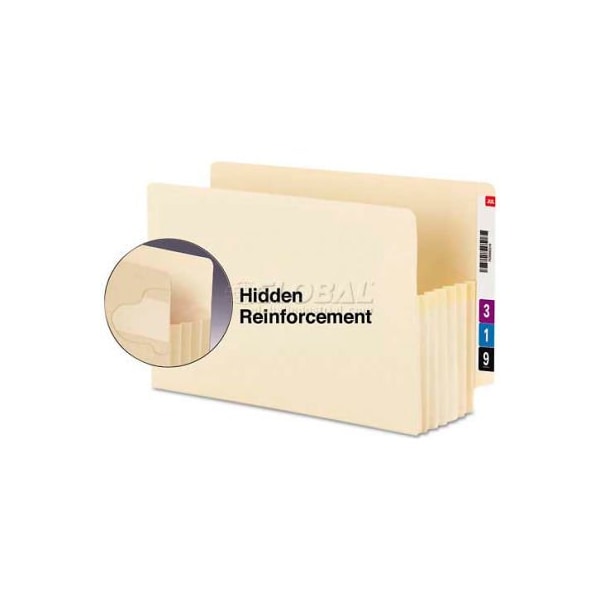 Smead end tab tuff pockets, 5 1/4 exp, letter, manila, 10/bx the "iron man" of end tab file pockets virtually indestructible file pocket won't rip out, even when pulled from the shelf by the gusset. Gusset is fully lined with tear-resistant tyvek, has special rollover reinforcement at the top, and extends into the front and back panels twice as far as standard file pockets. Hidden reinforcement strip at the point of greatest stress. Extra-wide pockets accommodate standard top tab file folders. Expandable file folder type: end tab pocket; size: letter; width: 11 3/4". this product arrives to most customers in 2-3 business days.