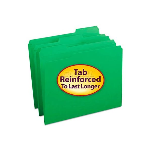 Smead file folders, 1/3 cut, reinforced top tab, letter, green, 100/box reinforced tabs for extra durability and longer life. Use color for categorizing file folder type: top tab; size: letter; folder material: 11 pt. Stock; color(s): green. this product arrives to most customers in 2-3 business days.