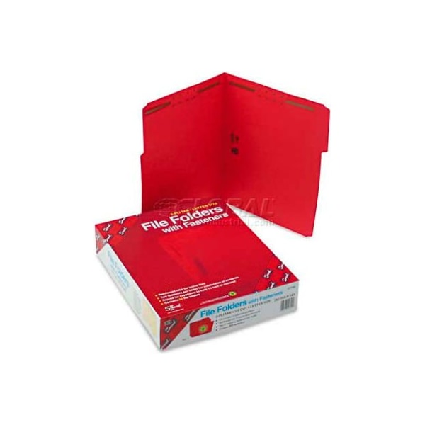 Smead folders, two fasteners, 1/3 cut assorted, top tab, letter, red, 50/box hold papers securely and keep them in order with fasteners. Bright colors offer ways to sort and code different projects. Fasteners provide separate filing surfaces. Reinforced tabs for extra durability. File folder type: top tab; size: letter; folder material: 11 pt. Stock; color(s): red. this product arrives to most customers in 2-3 business days.