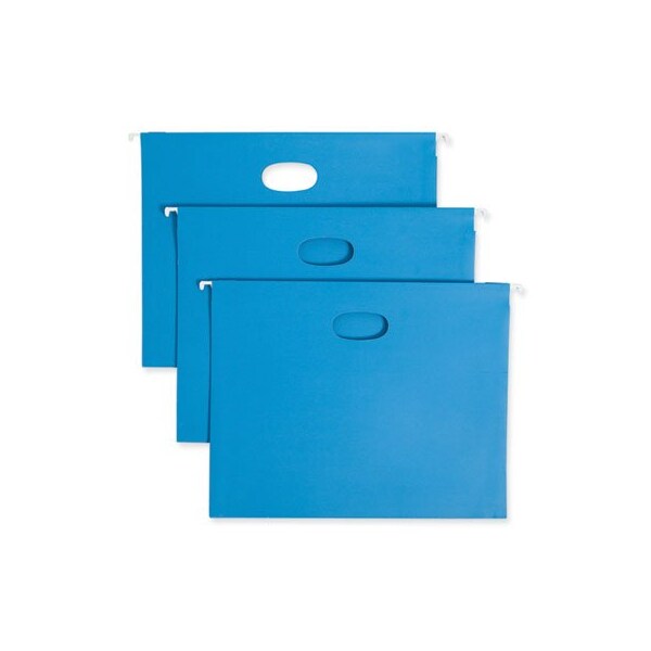 Hanging pockets are ideal for storing large amounts of paperwork. Full-height sides keep the pocket from getting caught when trying to take them out of a drawer or box. Documents are also better protected and secured in the pocket. Die cut handles allow for lifting and transporting. Great for files that need to be frequently removed from the file drawer. Folder Size Type: Letter; Max Folder Expansion: 3in; Folder Color: Sky Blue; Color Family: Blue.