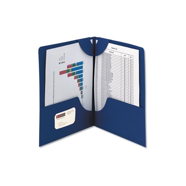 Specially designed Lockit feature secures documents without three-hole punching. Large pockets safely hold documents, photos or certificates for secure transport, while keeping everything readily accessible. Reinforced sides for extra durability. Left pocket is die-cut to hold a business card. Provides a distinctive impression for multiple projects. Front Cover Colors: Dark Blue; Color Family: Blue; Back Cover Colors: Dark Blue; Sheet Size: 11 x 8.5.