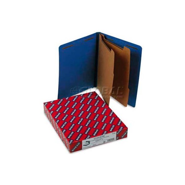 Smead pressboard end tab classification folders, letter, six-section, dark blue, 10/bx protect your documents and fingers with safeshield coated fastener technologythe ultimate solution to fastener issues, including paper tears, finger cuts and excessive fastener crinkling. Folder: 23 pt. Pressboard covers with straight cut tabs (labels sold separately). Two 2" safeshield bonded-style coated fasteners in positions no. 1 and 3. Divider: 17 pt. Kraft dividers. One 1" safeshield coated twin-prong fastener. Classification folder type: end tab; size: letter; number of sections: 6. this product arrives to most customers in 2-3 business days.